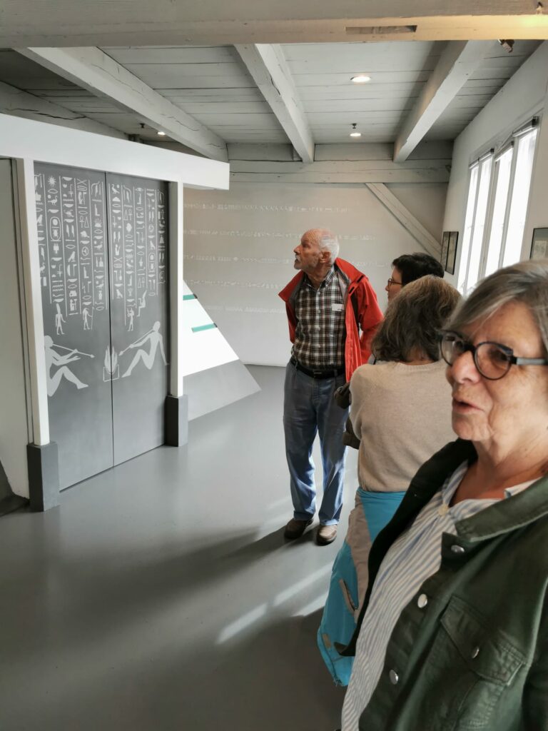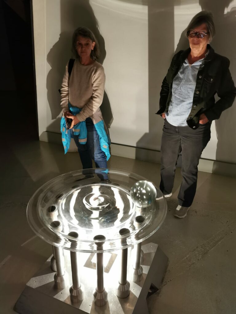 Der Zeitpunkt war gut gewählt, es gab nur wenig andere Besucher, also mussten wir nicht anstehen für die Einführung im Museum. Diese gestaltete sich fast wie ein kleiner Krimi und überraschte uns mit speziellen Effekten. Im ersten Raum kam plötzlich ein Lichtstrahl aus dem Untergrund. Ein Gefäss und eine Kugel aus Glas wurde sichtbar und wir wurden über ein Tonband informiert. Wieder wurde es dunkel, was ein Zeichen war, weiter zu gehen. Es folgte ein Raum nach dem anderen mit Projektionen an den Wänden und Erklärungen, nachgebildete Einrichtungen. Jeder Raum bot eine andere Überraschung