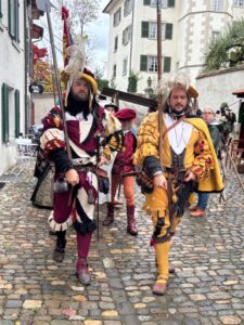 Der «Markt der Vielfalt» in Bremgarten ist etwas Besonderes. Dies können die fünf Frauen von give&get bestätigen, die sich auf den Weg machten in das bezaubernde Städtchen an der Reuss. Leider war uns das Wetter nicht gut gesinnt, es regnete teilweise in Strömen. Trotzdem liessen wir uns durch die malerische Altstadt treiben und besichtigten die verschiedenen Märkte: Waren-, Antiquitäten-, Mittelaltermakt und den historischen Handwerkermarkt. Vor allem die antiken Märkte waren die Reise wert, wir erlebten altes Handwerk und begegneten mittelalterlichen Handwerkern, Waschfrauen und bunt gekleideten Soldaten. Alle diese Figuren passten gut in die engen Gassen von Bremgarten, man konnte sich gut vorstellen, wie es dort früher hätte sein können. Wir kommen wieder, aber bitte das nächste Mal bei schönem Wetter!